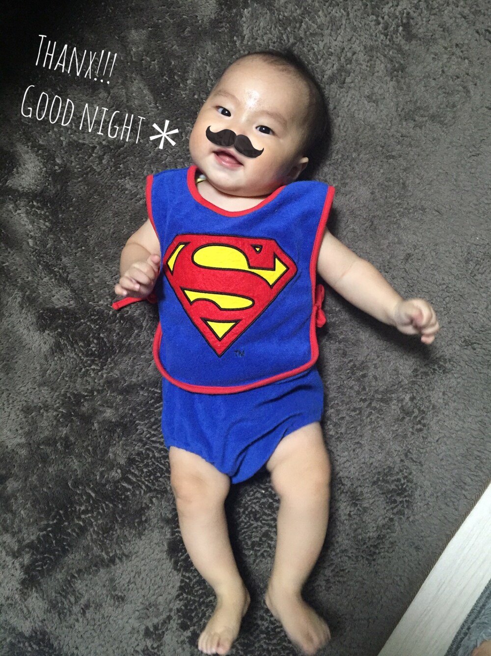 友だちの息子ちゃんのを譲り受けました♡ かわいすぎるスーパーマンのパジャマ♡♪ かっこいー夢見れそう♪おやすみー*