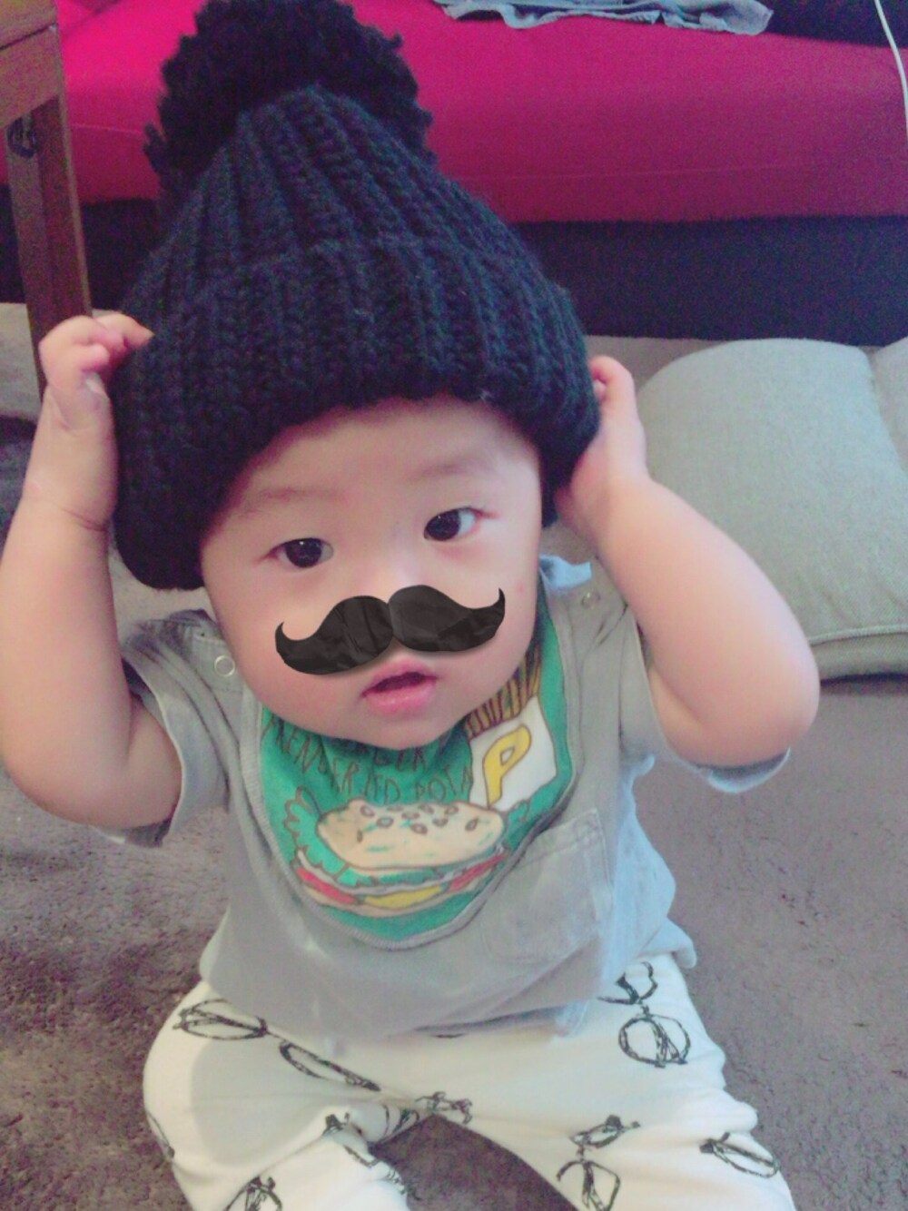 ベビまんのニットキャップ/ビーニー「うずまき ニット帽」を使ったコーディネート