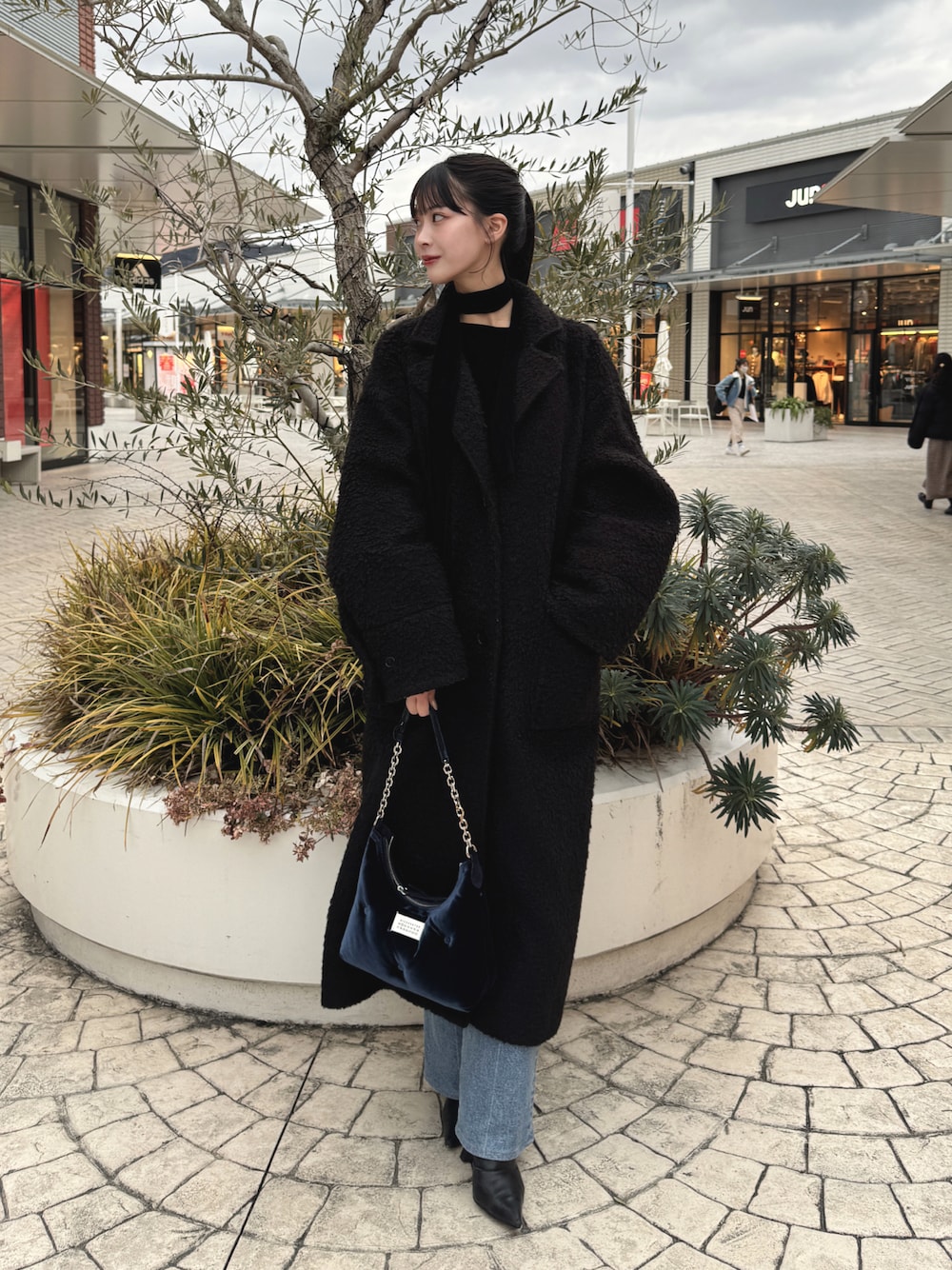 チョーカー付きトップス が可愛いコーデ🖤 moussyのデニムと合わせてみたよ✨ このkastaneのコート 大きめだからニットも中に着込めるから オススメだよ❄️ _______________ ・164cm ・骨格ウェーブ ・イエベ秋 ・顔タイプ フェミニン Instagram @kyarentiin.__ ________________