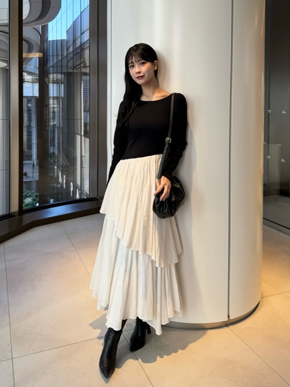これ一枚で大人っぽく 着こなせる🤍✨ スカートが少しボリュームが あるのがお気に入り✨ _______________ ・164cm ・骨格ウェーブ ・イエベ秋 ・顔タイプ フェミニン Instagram @kyarentiin.__ ________________