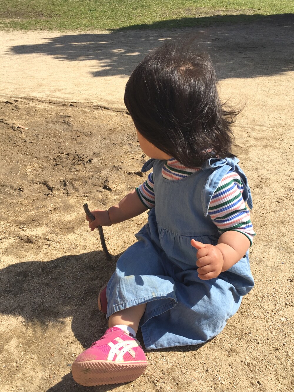 公園にてお絵描き たまに口に入る枝