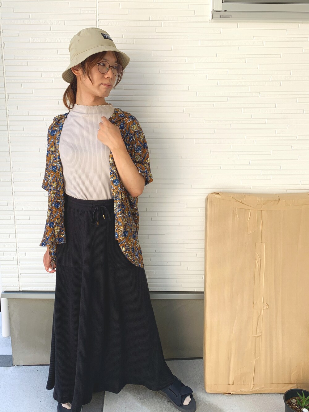 久々の投稿✨ 通販で買ったスカートが思ったより生地厚めでちょっと暑かった……。秋口まで封印かも……。