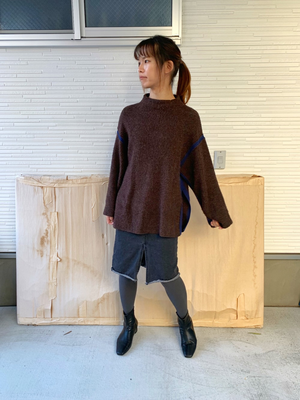kyatomのニット/セーター「5Gハイショクボトルネックプルオーバー/922753」を使ったコーディネート