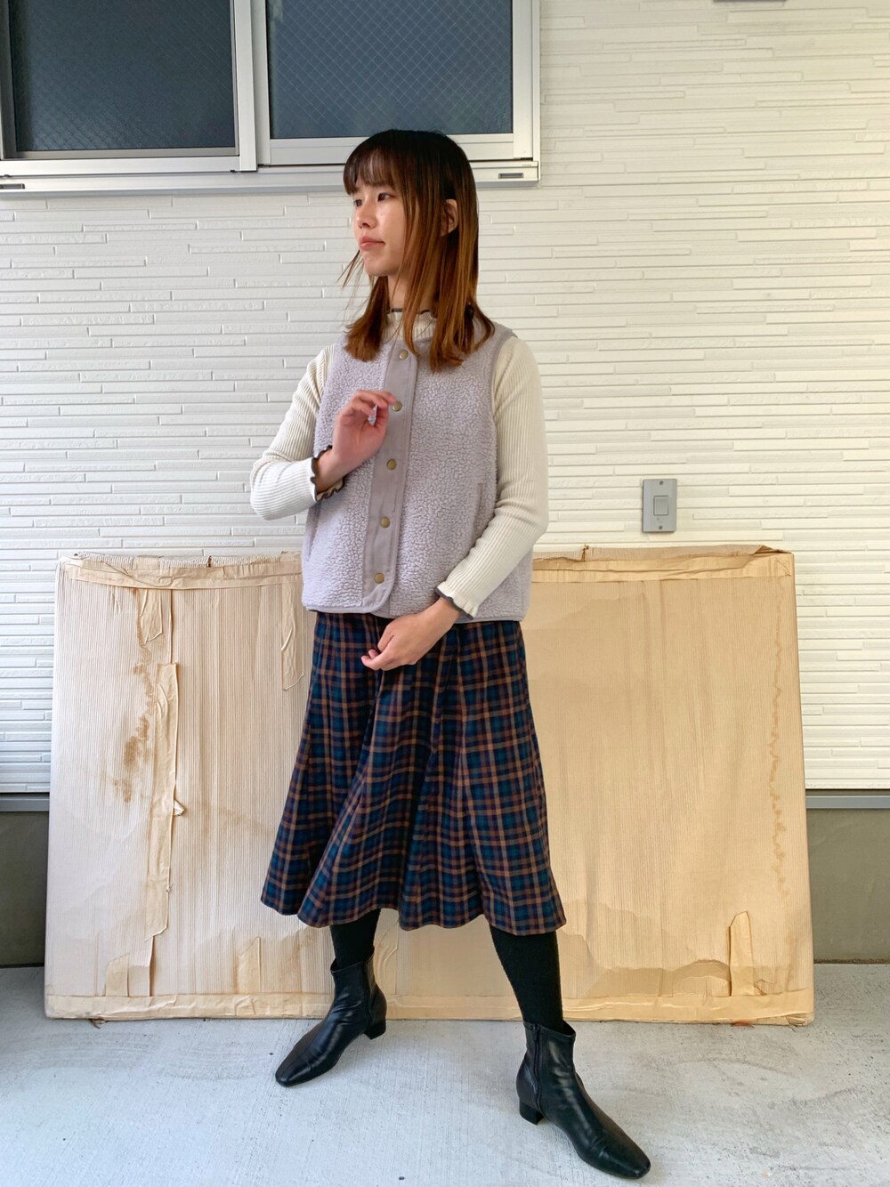 kyatomのスカート「先染めチェックスカート」を使ったコーディネート
