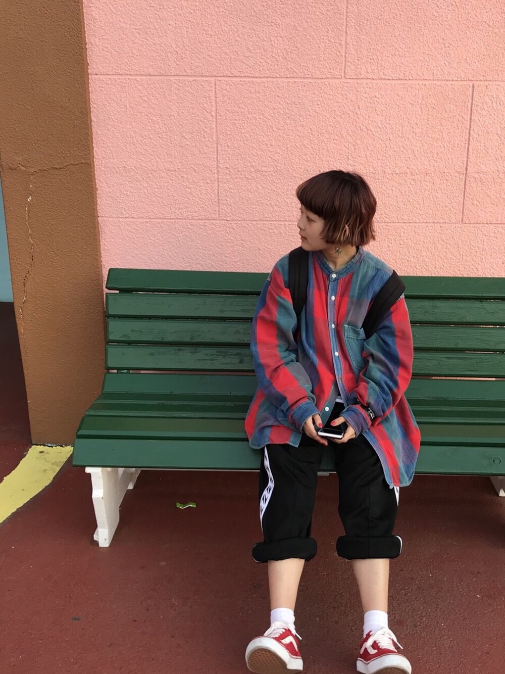 かよちんのスニーカー「VANS ヴァンズ OLD SKOOL DX オールドスクール DX V36CL+ T.RED」を使ったコーディネート