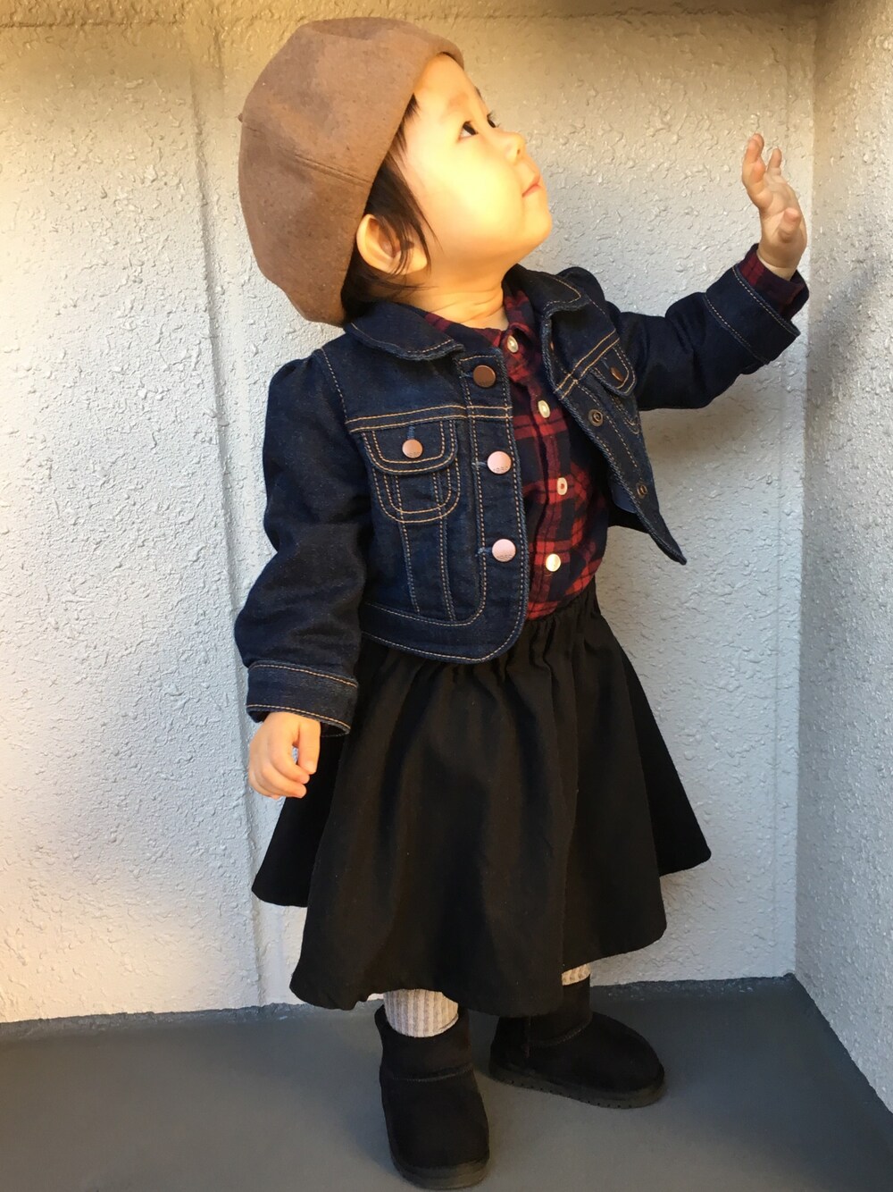 ベレー帽に合わせたコーディネートにしました。 小さい子がベレー帽をかぶるとまた可愛いですね^_^