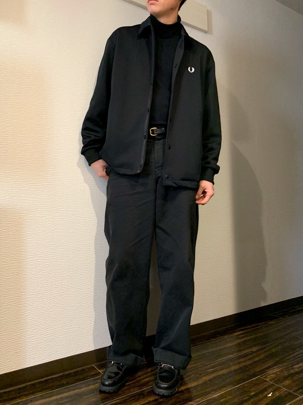 久しぶりにブラックワントーンコーデ。 コーチジャケットはモードにもストリートにも使える万能アウター。 黒いアウターは何にでも合わせられるから1枚持っとくとめっちゃ便利。