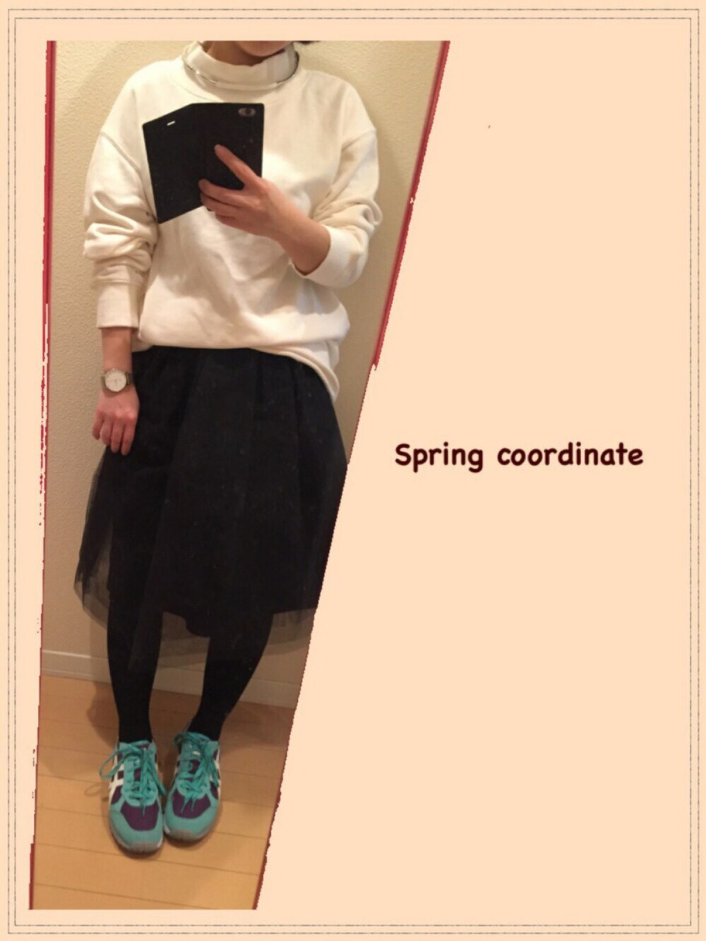 あったかいですねー。 春コーデとか言いつつ、タイツはいてるからイマイチ春っぽくないw モノクロコーデに憧れるのですが、ついつい色を入れてしまいたくなるものです。 やっとアウターなしでお外に出れるのは嬉しいものですね♪