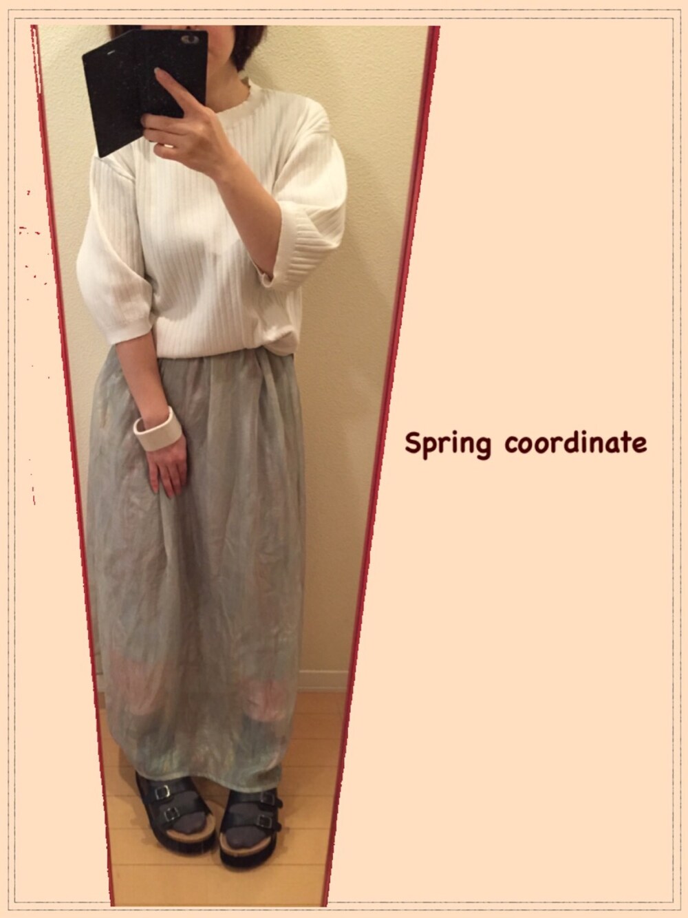 春がきた。でもなぜだかまだ寒い…。 GUのトップス好き過ぎ。 サンダルは厚底です。ロングスカートは、おちびには辛いんです( ´・ω・)