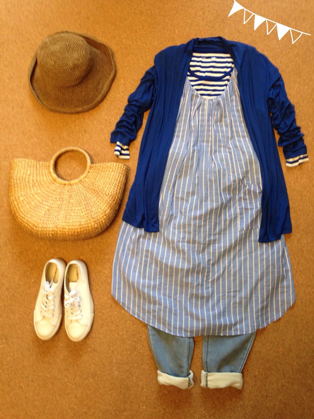 久々のナチュラルコーデ☆ 今日はあいにくの雨模様だけど 晴れの日に家族でピクニック〜♫なんて時に良さげ☻ チュニックワンピの肩がねじれてるのがポイントです☆