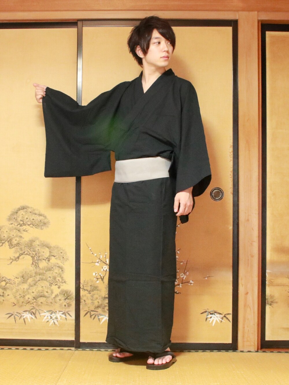きょー。の浴衣「浴衣 4点セット【 浴衣 + 帯 + 下駄 + 扇子】 メンズ」を使ったコーディネート