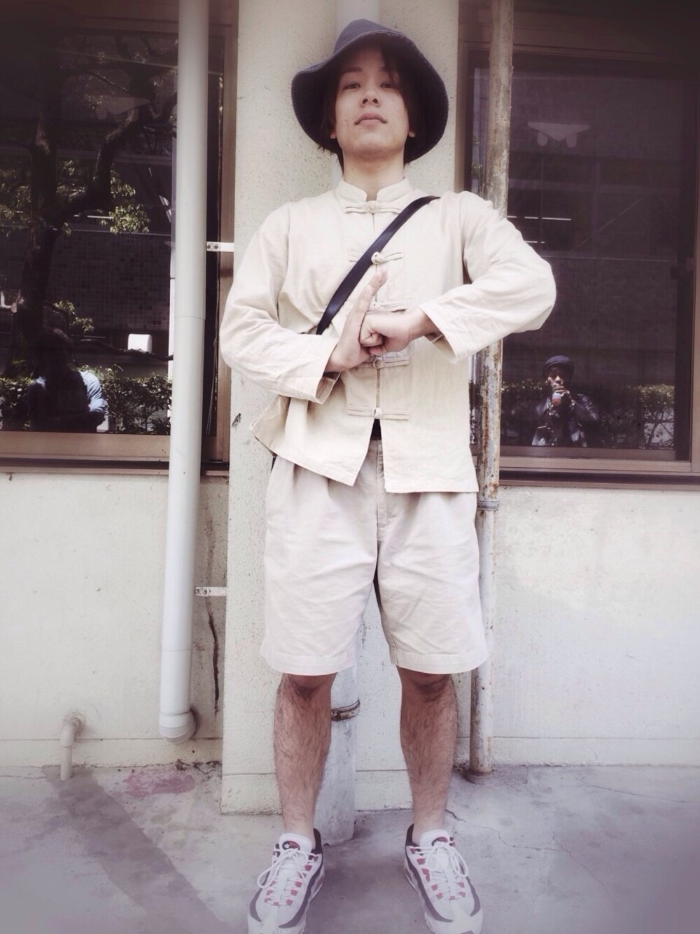 晃 トップス チャイナシャツ(ブランド謎) パンツ ラルフローレン バケットハット (不明) スニーカー AIRMAX95 鞄 コーチ