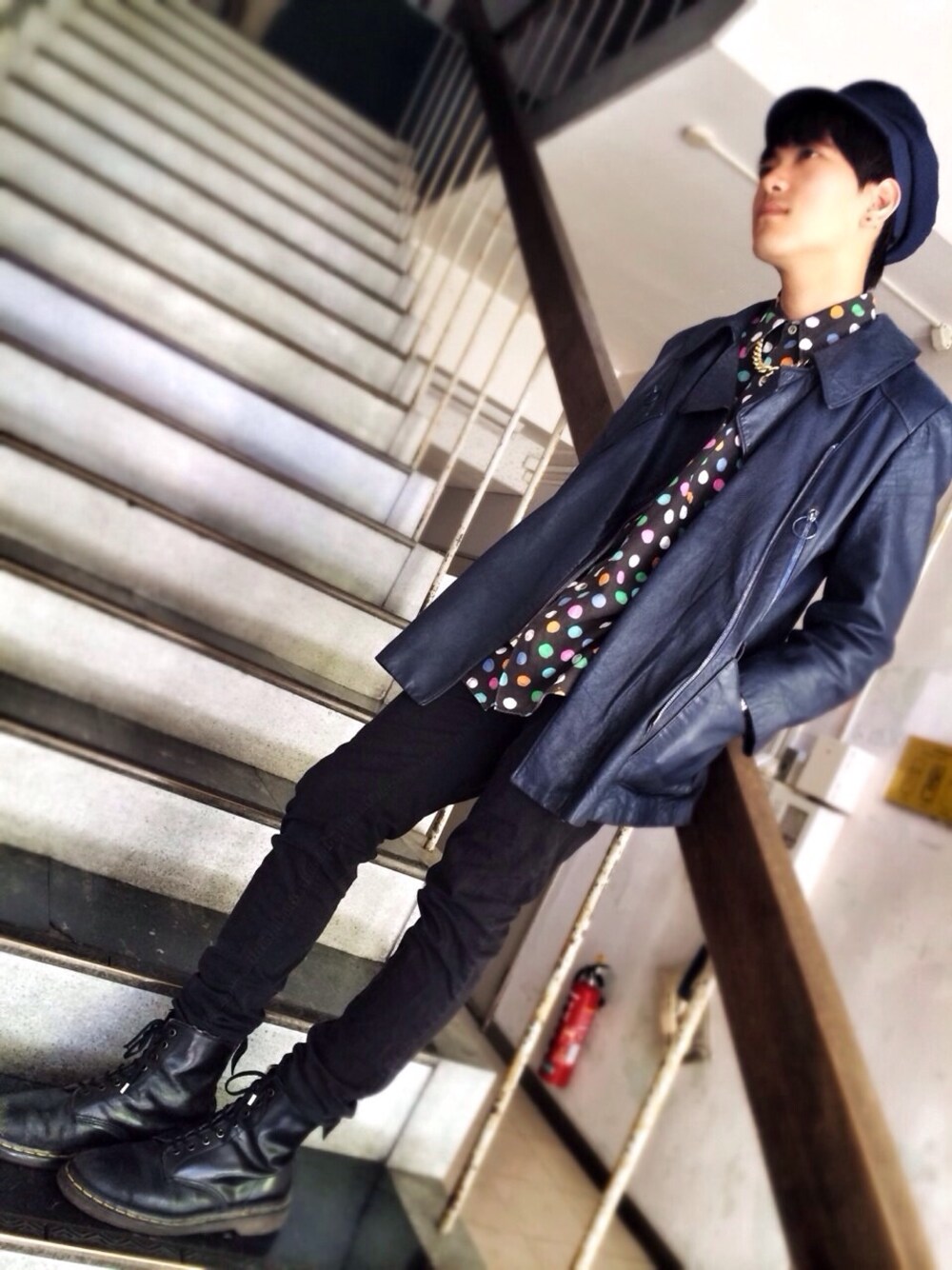 真 キャスケット agnès b. シャツ Paul smith LONDON スキニー ZARA シューズ Dr.martens レザージャケット ビンテージ