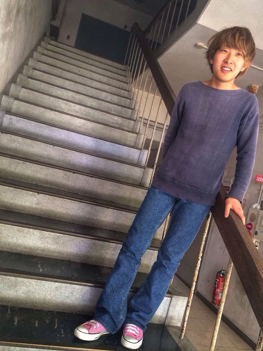 グレー系のスウェットを着用したメンズの春コーディネートの1枚目の写真