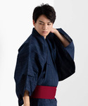 京都の着物屋さん 【KYOETSU】 届いてすぐ出かけられる コスパ最強セット モデル身長:174cm 着用サイズ:Lサイズ(ブルー系その他3/C11.縞×紺(ドビー角帯 赤))