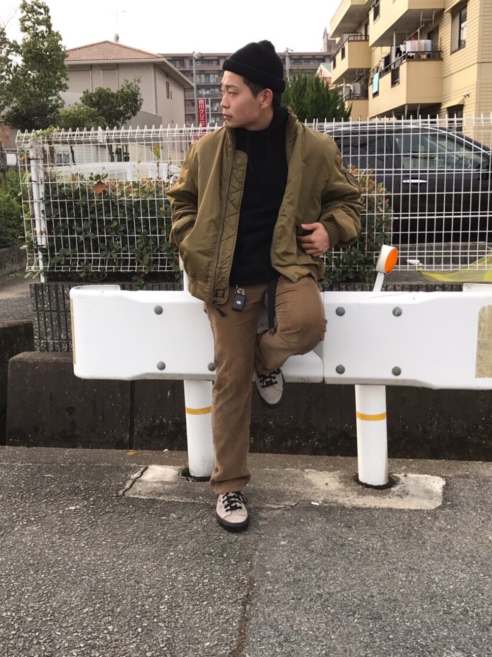 オーバーサイズのma-1。 3年前くらいに古着屋で買った時は、B-BOYマインドをまだ持ってて、とにかくオーバーサイズで決めてました。でも最近はストリートも大事にしつつやキレイ目とか色々やってて、いい意味で変わっているので、このma-1 を着こなすことに難しさを感じてます。 男でオーバーサイズになると、野暮ったさが出るので。。 お直しでジャストサイズにするのもアリかなーとは思うんですが、やっぱり昔ながらのアームの太さであったり、そういったシルエットのままにすることがいいと思っています。 ビーニーはくるくるにして、まるでNYC...