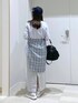 . カジュアルコーデ◯。 スウェットスカートでカジュアルスタイルに! ラベンダーカラーのトップスにチェックシャツを 巻いてコーデのポイントに♪ スニーカースタイルだからお出掛けにもおすすめ♡ instagramも更新してます🤎 きょんのinstagramはこちら→