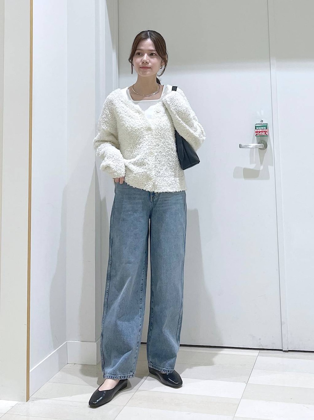 . きれいめカジュアルコーデ♪ ぽこぽこ素材が可愛いカーデ♡ アイボリー×デニムは王道の可愛さ!! Vネックで顔まわりをスッキリ見せてくれるよ♪ 着丈はヒップが半分隠れる位。 これは春のモテコーデ間違いなしです! instagramも更新してます🤎 きょんのinstagramはこちら→