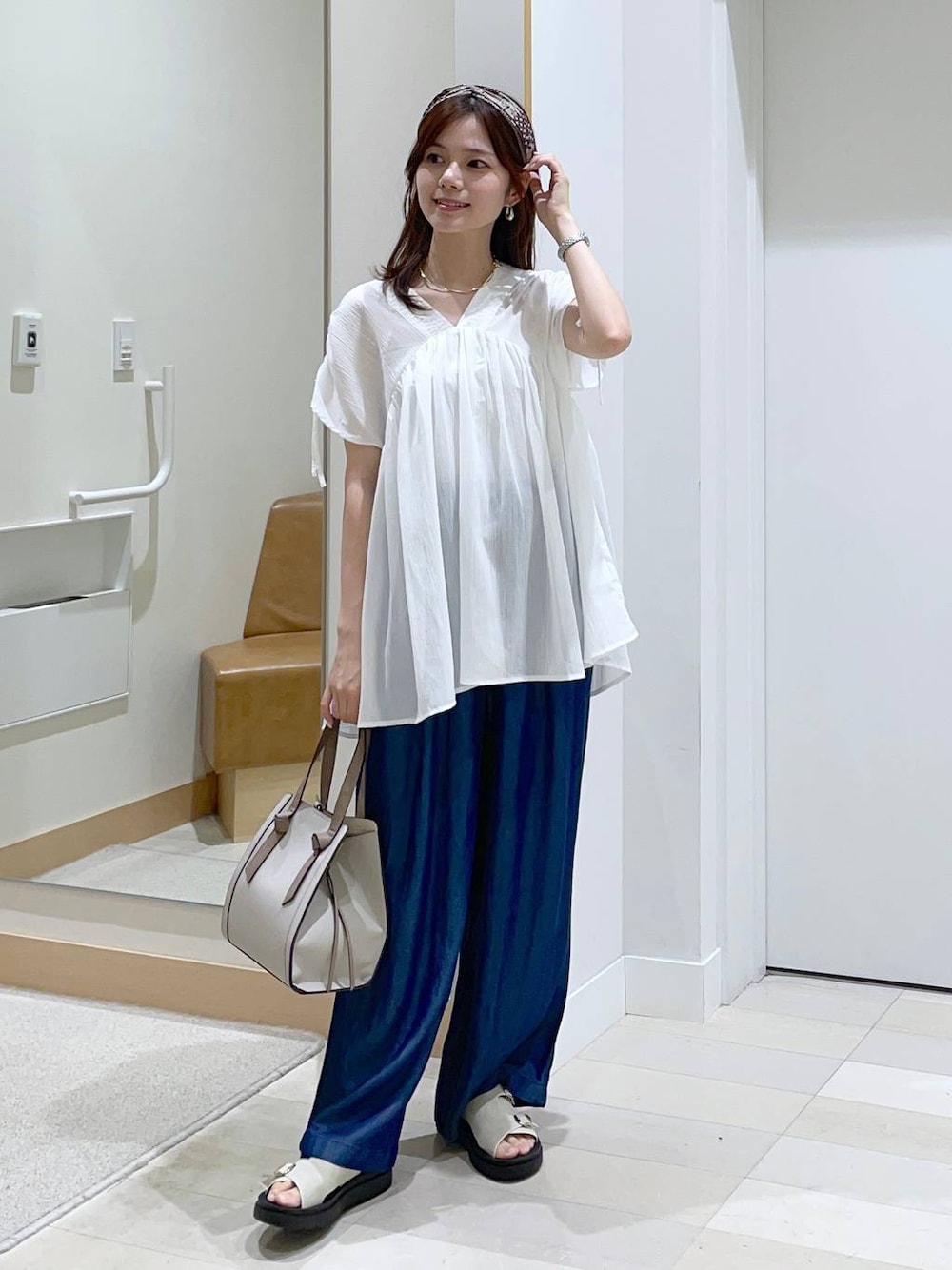 きれいめカジュアルコーデ♪ ブラウスとデニムパンツは程よいゆとりのある サイズ感でどちらもリラックス感のあるアイテム⭐︎ 柄カチューシャがコーデのポイント♡ 大人可愛いゆるコーデです! instagramも更新しています🤎 きょんのインスタはこちらから→