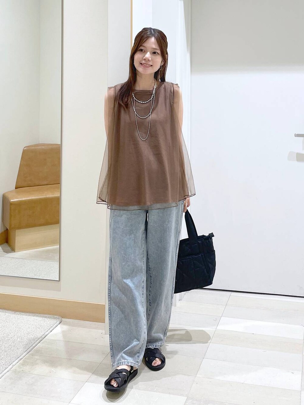 . きれいめカジュアルコーデ◯。 インしなくてもお洒落感がでる チュールタンク! 腰まわりをしっかりカバー♪ タンクだけどチュール部分が肩半分くらいを カバーしてくれるから二の腕が華奢見えする♡ デニムでカジュアル合わせしてみたよ⭐︎ instagramも更新しています🤎 きょんのページはこちら▶︎