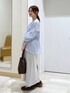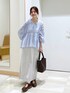 . . きれいめカジュアルコーデ♪ ブルーとダークブラウンの色合わせが好み♡ リボンブラウスはブルー系だと甘い印象になりにくい! ゆったりと着られて体型カバーになるし 羽織としても使えちゃう◎ 合わせたスカートはウエストゴムのスカートで 履き心地抜群!セルフカットができるから お好みの丈感に調整できるよ♪ instagramも更新しています🤎 きょんのページはこちら▶︎