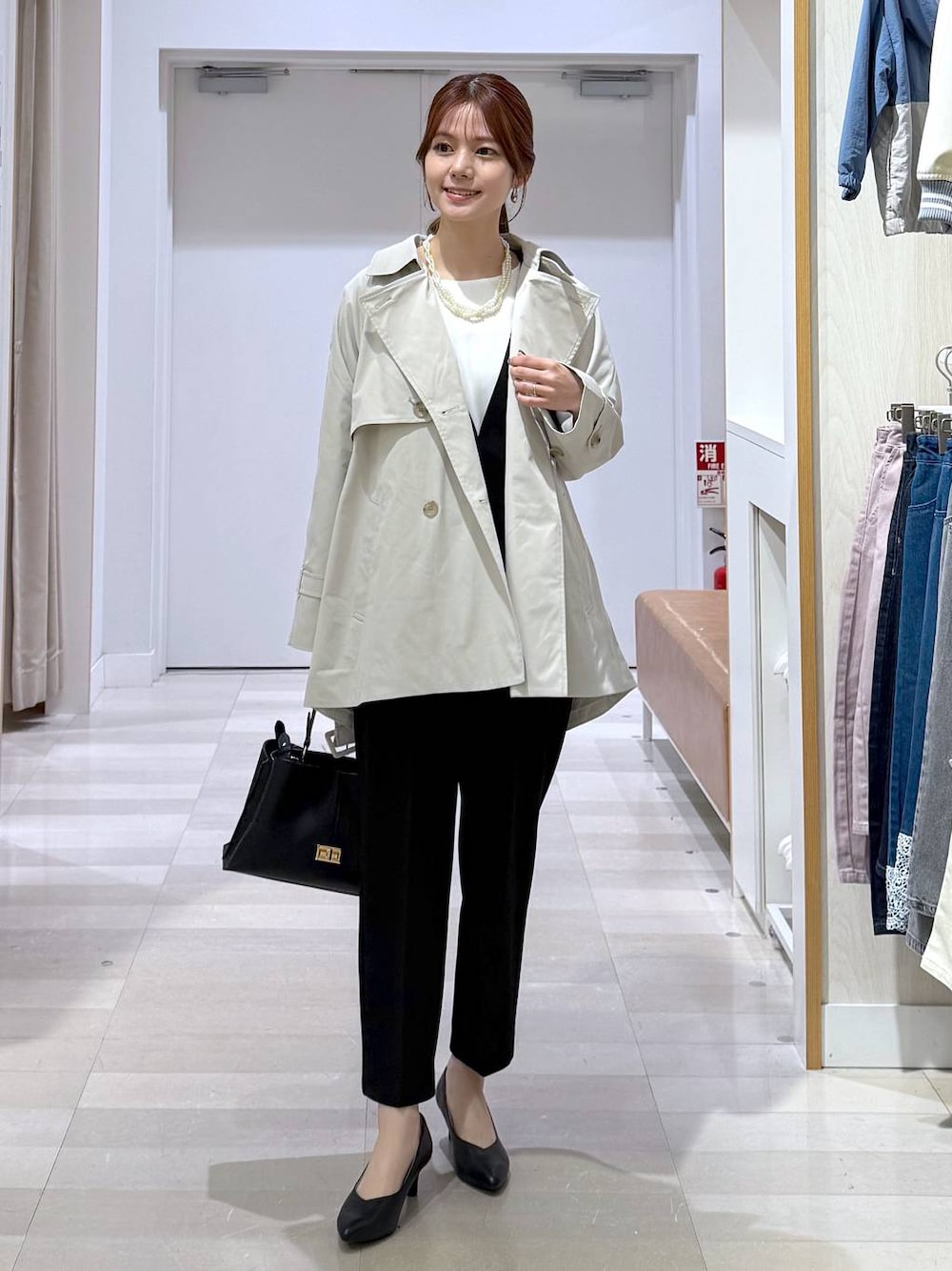 オケージョンコーデ♪ アウター▽ 春に持っておきたいアウターのトレンチコート! ゆとりのあるサイズ感で厚めのインナーを 仕込んでも大丈夫◎ Sサイズからの展開があるから低身長の方にも おすすめです♡普段使いからお仕事やハレの日にも 着られます♪ セットアップ▽ サイズはジャストサイズ。程よいVネックに なっていて顔まわりがスッキリ見えます! ジャケットの着丈はヒップの半分が隠れる丈感♪ ストレッチが効いていて動きやすさも抜群です◎ ブラウスはペプラムシルエットで体型カバーも してくれる!裏地付きで透けの心配も大丈夫! パンツはウエストゴムで履き心地抜群!ストレッチも 効いているから動きやすさも◎ 155以上の方はMサイズがおすすめです!
