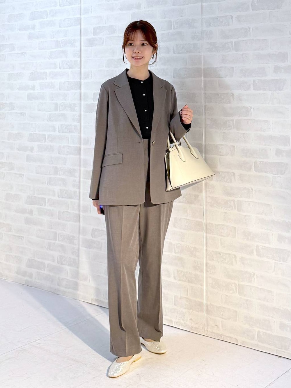 オケージョンコーデ♪ ジャケット▽ ゆとりのあるテーラードジャケット。 ゆったり着られるのにきちんと感もだしてくれる! ストレッチが効いているので着心地◎ 洗濯機で洗えるのも嬉しいポイント♪ Sサイズからあるので低身長の方にもおすすめ。 ブラウス▽ 襟付きのブラウスを使用。襟を取り外して 使える2wayなんです!ジャケットと合わせて オケージョンコーデにもおすすめですし お仕事着はもちろん、普段使いもできます⭐︎ パンツ▽ 履くだけで美脚見えするワイドパンツ。 ワイドですが太すぎないワイドシルエットで きれいめにもカジュアルにも使える♪ 同素材のジャケットと合わせてセットアップにしても 良いですし、スウェットと合わせてカジュアルに 着るのもおすすめです♡