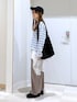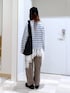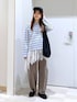 大人カジュアルコーデ♪ ニット▽ 大人カジュアルコーデにぴったりな ボーダーニット♡ゆとりのあるサイズ感♪ 首元は程よいあき具合だからスッキリと着られる! 1枚着はもちろん、レースアイテムやシャツを レイヤードするのもおすすめです♡ デニム▽ 裾に向かって丸みを帯びたシルエット。 履くだけで今年らしいトレンド感のあるコーデに 仕上がる!柔らかいデニム素材で履き心地も抜群◎ 私の身長でSサイズがぴったりでした!