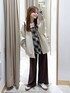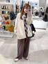 大人カジュアルコーデ◯。 ジャケット▽ ダンボール素材のノーカラージャケット◯。 ゆったり着られて腰まわりをしっかりカバー◎ もちもちした肌触りで着心地抜群! シルエットがめちゃくちゃ可愛い♡ リアルバイアイテムです! ビスチェ▽ コーデのポイントになるチェックビスチェ♡ 裾がフリンジになっていて可愛いんです♪ 甘くなりすぎず大人でも挑戦しやすいデザイン◎ スウェットパンツ▽ 脚のラインをひろわないワイドシルエットの スウェットパンツ。裾は切りっぱなしデザインに⭐︎ 脇線が前にきているデザインがコーデのポイントに! ウエストには太めドロストがついています。 私は1折りして着用しています⭐︎