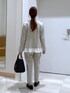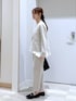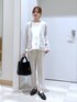 オケージョンコーデ♪ サイズはジャストサイズ。程よいVネックに なっていて顔まわりがスッキリ見えます! ジャケットの着丈はヒップの半分が隠れる丈感♪ ストレッチが効いていて動きやすさも抜群です◎ ブラウスはペプラムシルエットで体型カバーも してくれる!裏地付きで透けの心配も大丈夫⭐︎ パンツはウエストゴムで履き心地抜群!ストレッチも 効いているから動きやすさも◎ 155以上の方はMサイズがおすすめです!