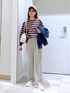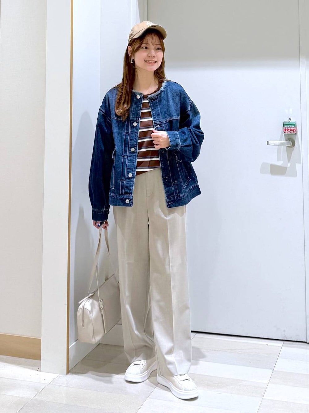 大人カジュアルコーデ♪ デニムジャケット▽ 春といえばのデニムジャケット♡ 首元はノーカラー仕様でフリンジに なっているところがポイント。 ゆったりと着られるサイズ感でお袖も少し ボリュームがある形に。ごわつきにくいのも 嬉しいですよね♪ ロンT▽ 人気のヘビロッTEEのボーダーシリーズ♪ サイズはゆったり。袖は少しボリュームがあります。 配色が可愛いボーダーでトレンド感もだしてくれる! 大人なカジュアルコーデにぴったり◎ パンツ▽ 履くだけで美脚見えするワイドパンツ。 ワイドですが太すぎないワイドシルエットで きれいめにもカジュアルにも使える♪ 同素材のジャケットと合わせてセットアップにしても 良いですし、スウェットと合わせてカジュアルに 着るのもおすすめです♡