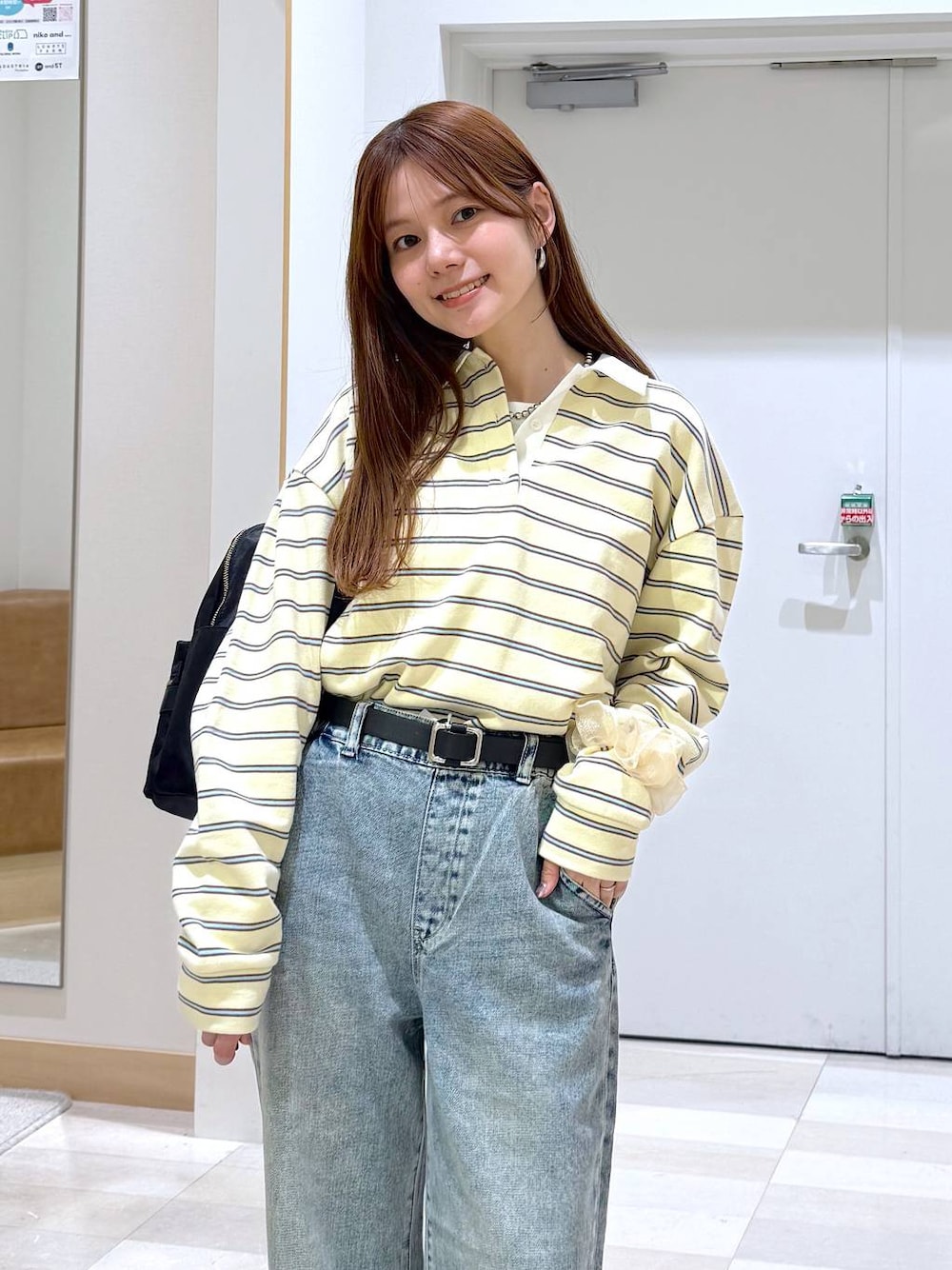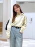 カジュアルコーデ♪ スウェット▽ トレンド感のある襟付きボーダースウェット。 ゆったりとしたサイズ感でゆるっと着られます⭐︎ 春らしいボーダーカラーが可愛い♡ 1枚着はもちろん、Tシャツやシャツを レイヤードするのもおすすめ♪ デニム▽ ストンと落ちるシルエットが美脚見えしてくれる デニムパンツ。ウエストがゴムで履き心地抜群です! 私はSサイズ着用で少しウエストがゆるく 感じました!中のドロストを絞って調節ができるのと ベルトループがついてるからベルト着用で 合わせていただけます♪
