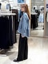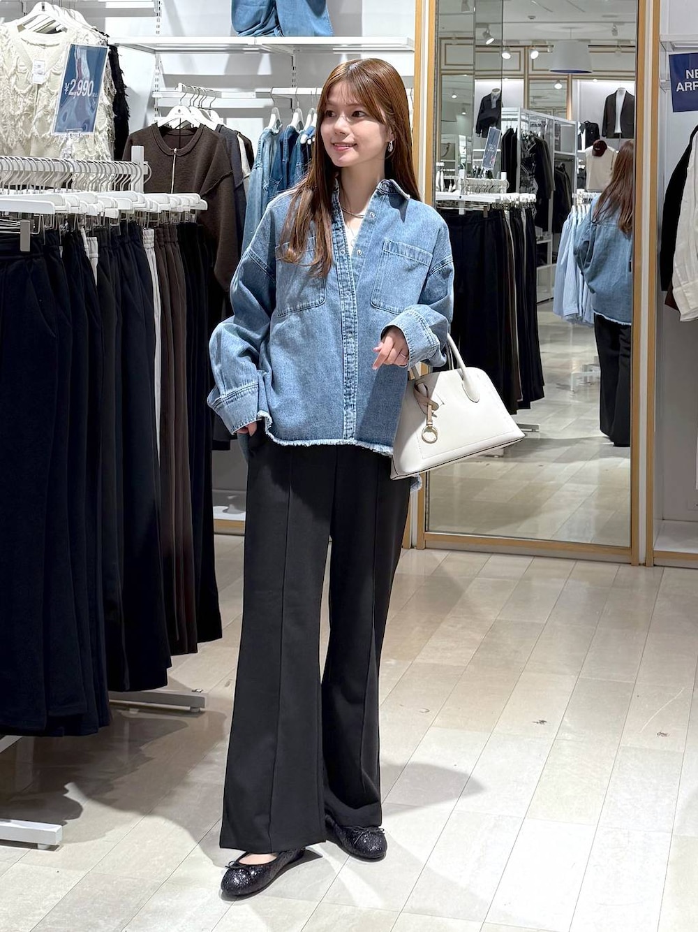 きれいめカジュアルコーデ♪ シャツ▽ オーバーサイズなシルエットのデニムシャツ。 裾がフリンジになっているところがポイント♡ 柔らかい生地感で着心地抜群! 襟をぬいて着るのがおすすめです♪ パンツ▽ ゆるやかなフレアシルエットが特徴のパンツ。 サイズはぴったり。Sサイズの展開があるから 低身長さんにもおすすめ! ウエストゴムでゆったり履けます◎ シワになりにくく乾きやすいのも嬉しいポイント⭐︎