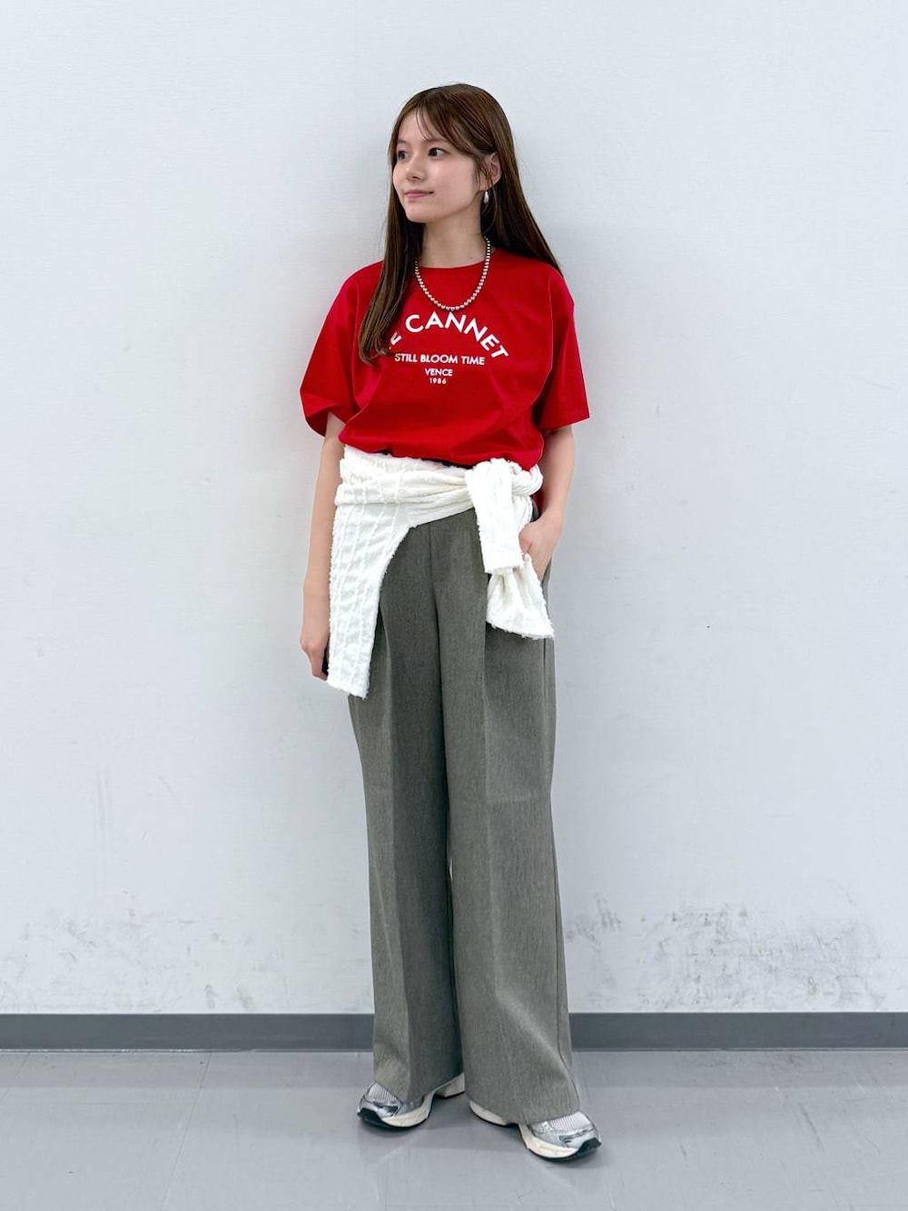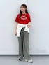 大人カジュアルコーデ○。 Tシャツ▽ 高見え素材のリッチクリーンT。 接触冷感・抗菌防臭などの充実した機能性◎ サイズやカラーも展開豊富なのでぜひ チェックしてみてください♪ 差し色コーデにもおすすめです♡ パンツ▽ ウエストゴムで履き心地の良いパンツ。 センタープレスが入っていて脚を綺麗に 見せてくれます!程よいゆとりがあるシルエットで きれいめにもカジュアルにも使いやすい◎ 撮影ではM着用ですが普段はSを着用してます!