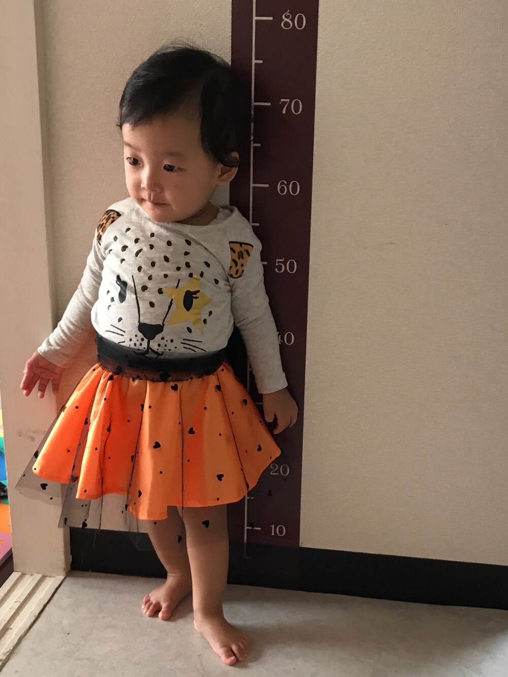 お腹でてる〜保育園のハロウィンパレードの衣装! これに黒タイツ! ヘッドアクセは付けてくれず・・・ 園行事で親は参加できないらしい( ; ; )