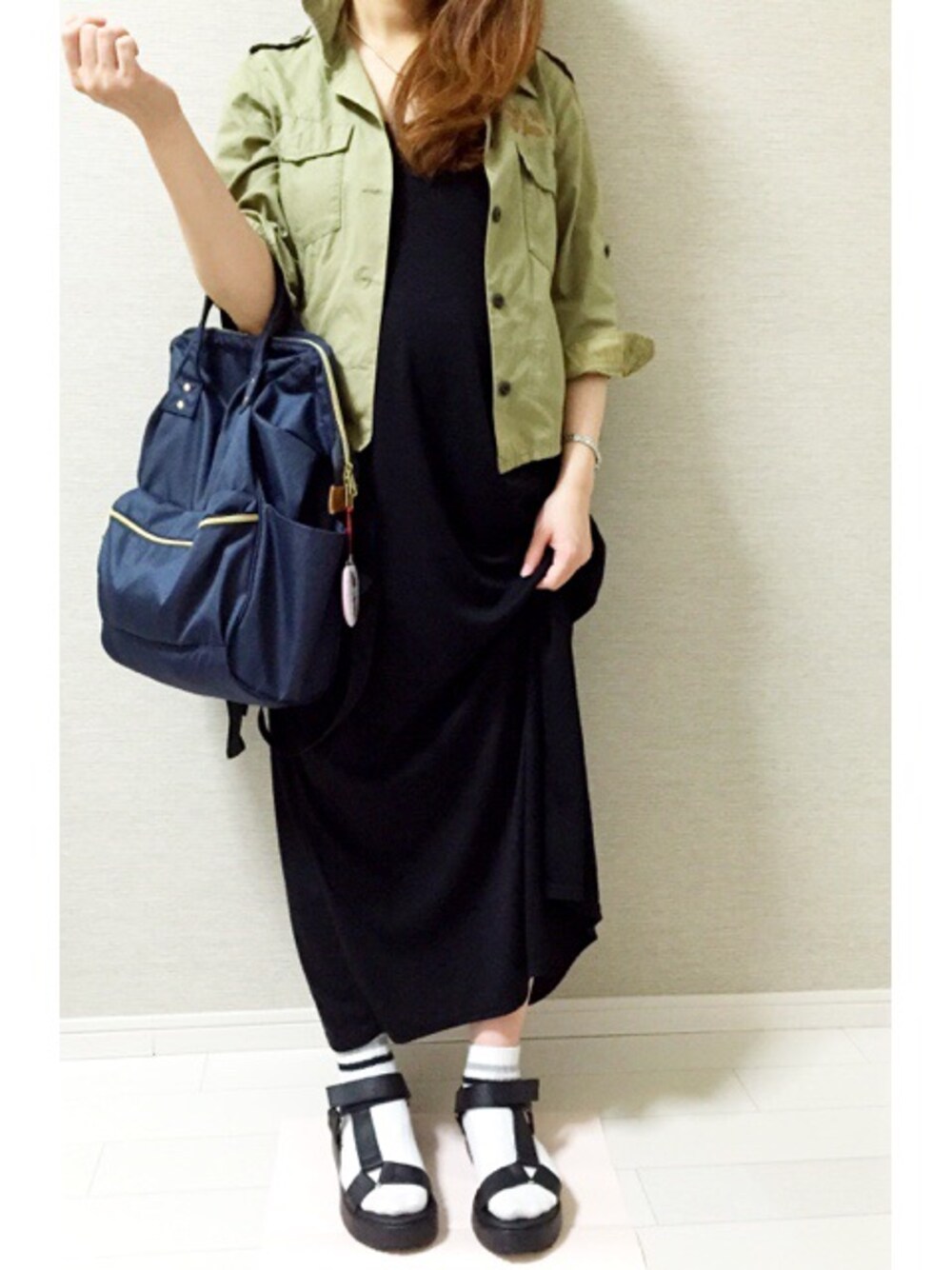 カーキシャツ/E hyphen world gallery マキシワンピ/楽天市場 ライン靴下/tutuanna 31w2d♡ 今日は妹に撮ってもらいました。 ら、なんか襟たってるし、手の位置w みなさん鏡越し以外の写真は、 どうやって撮ってるんですかー?( ;´Д`) どっかにスマホ置いて、 セルフタイマーしようにも、 ちょうどいい角度にならんw カーキシャツは数年前のものです。 ゆき氏がオススメのクリニークの アレ← 欲しい〜2000円降ってこないかな。。。
