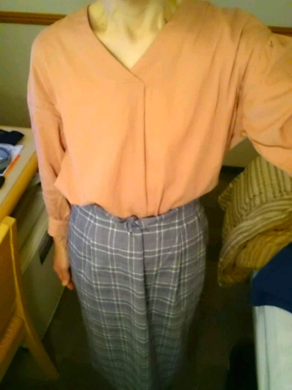 秋めいてきましたので、チェックスカートにブラウスのコーデです。