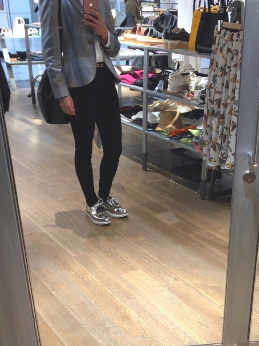 仕事帰りなのでジャケット着たまま!最近ユニクロのレギパンがマイブームで、色違い6本を履き回してますw