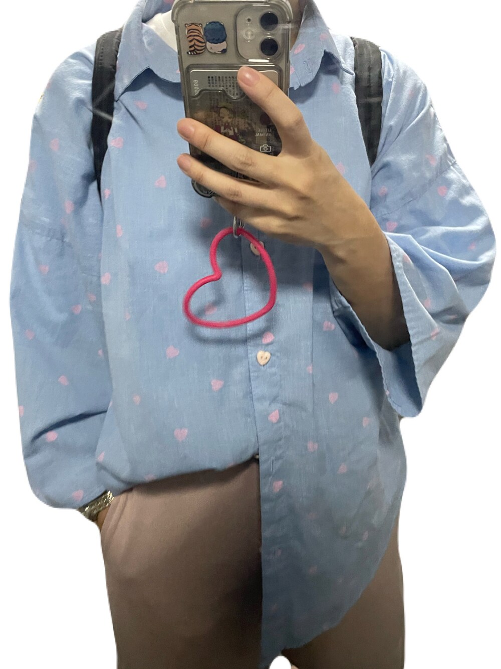 ピンクのスウェットとハートブラウス合わせ
