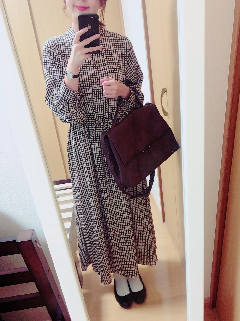 GUのチェックワンピース♡ オンラインショップと超大型店限定でした! 生地に控えめなツヤがあり、上品に着れます✨ もう少し寒くなったら、ベストやニットカーディガンと合わせたいです♡
