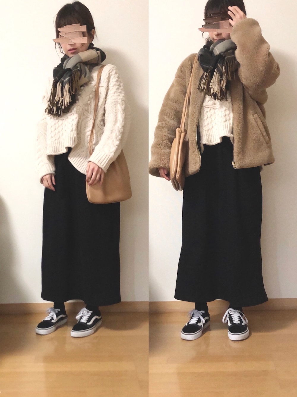KBFのケーブルニット着回しです😍 お気に入りすぎて、週3くらい着ています😂笑