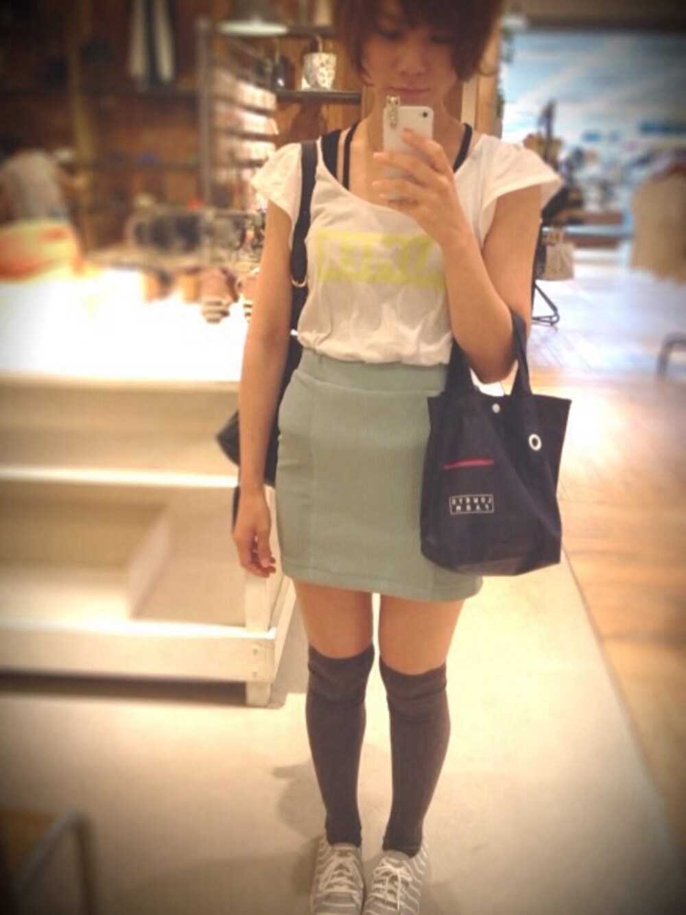 珍しくタイトスカート(⌒▽⌒) 最近大きい鏡みるとコーデ撮りたくなる、笑← WEAR病、笑←