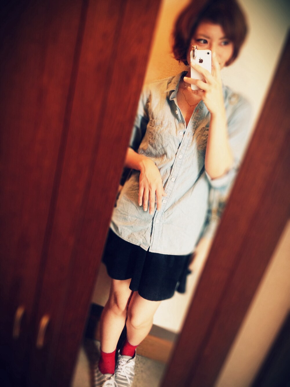 着回し着回し(⌒▽⌒) ヤバイ、シャツしわくちゃ〜😂 夜勤中ですがすでに帰りたい、😭