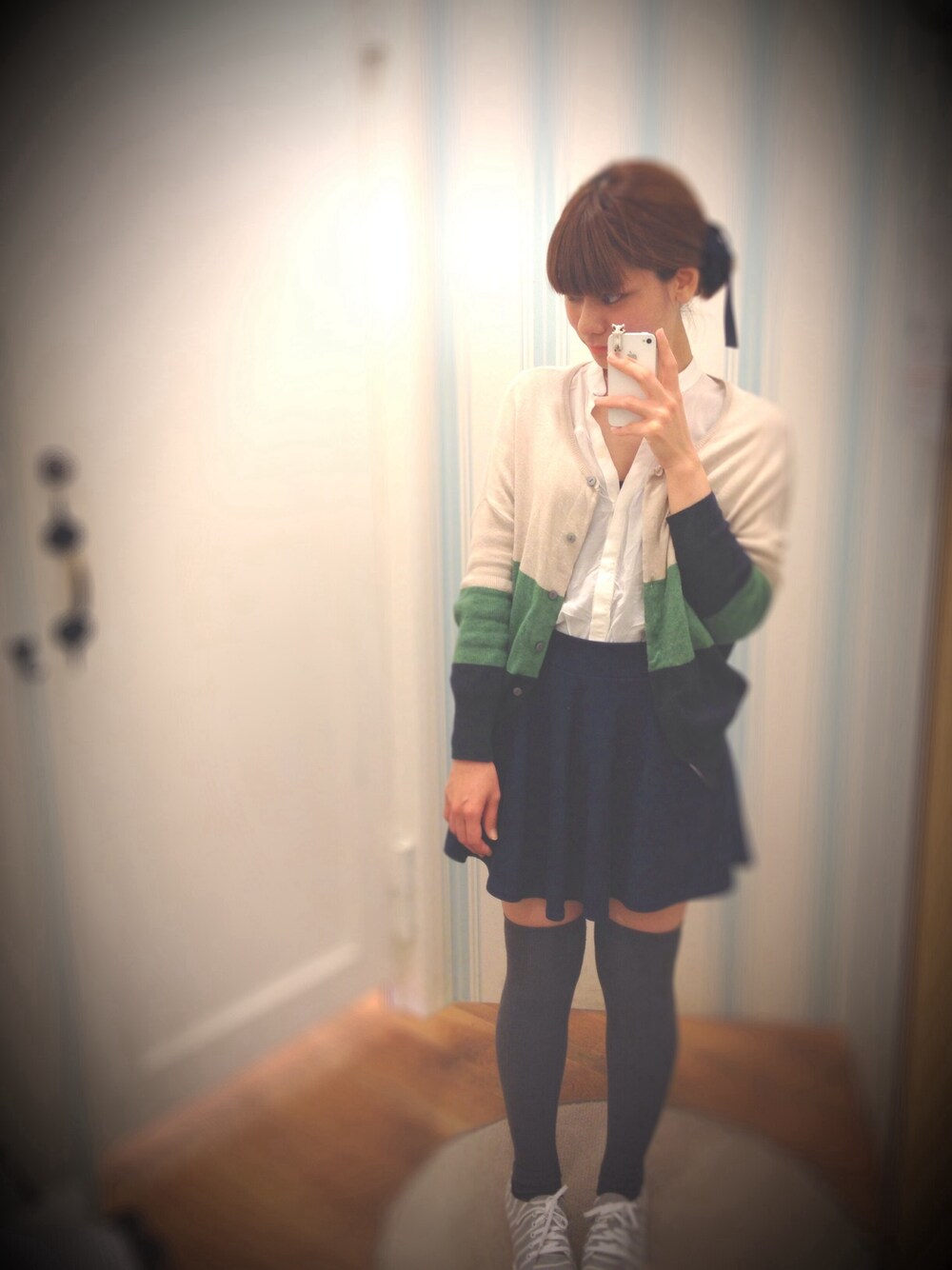 ちょっと久々(^-^)/ 今日は少し肌寒かったから カーディガンを羽織って。 おnewのシューズもgetできて happyな1日でした♬