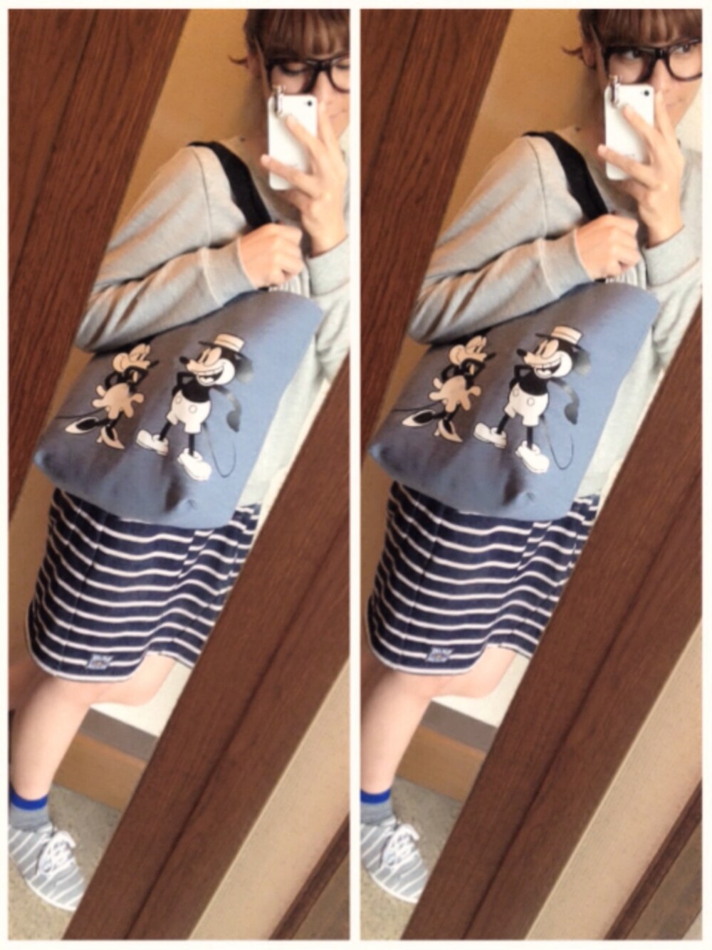 ボーダー×ボーダー!笑 (=゚ω゚)ノ ちょっと色味少なかったかなぁ^^; トートバックは雑誌の付録!笑 裏地がcherてとこがお気に入り♡^^