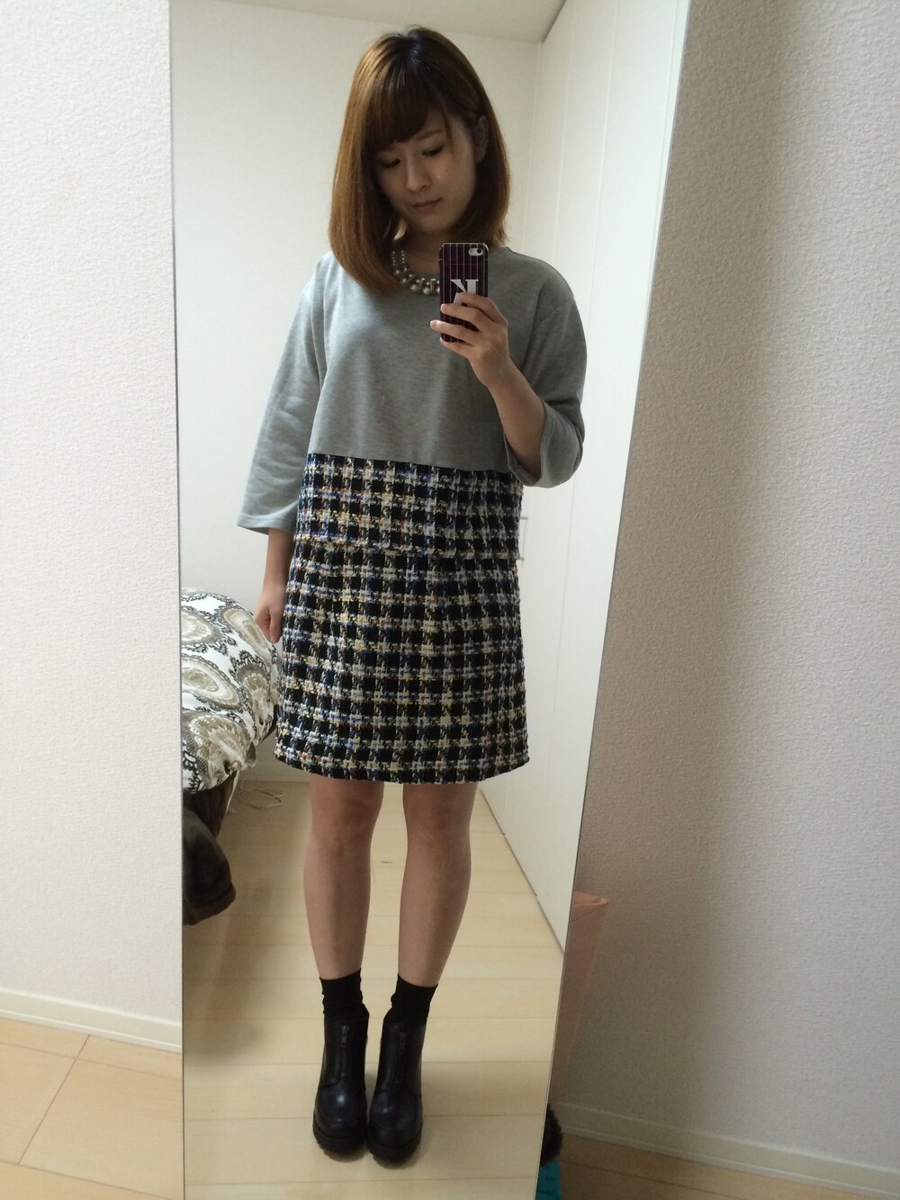 きーこのTシャツ/カットソー「ウラケ×ツイードプルオーバー」を使ったコーディネート