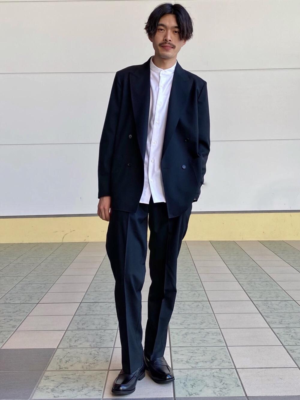 バンドカラーシャツや、リラックス感のあるセットアップで都会的なオフィスカジュアルスタイリングを作りました。