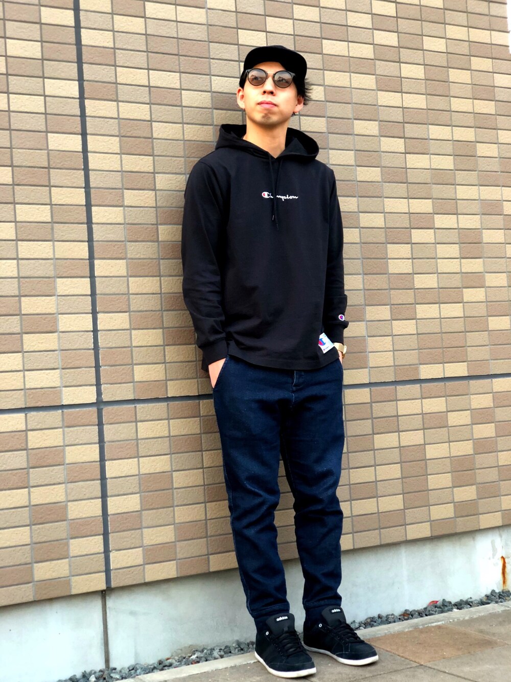 きょうたのパーカー「Champion (チャンピオン) LONG SLEEVE HOODED T-SHIRTS ロングスリーブフーデッドTシャツ」を使ったコーディネート