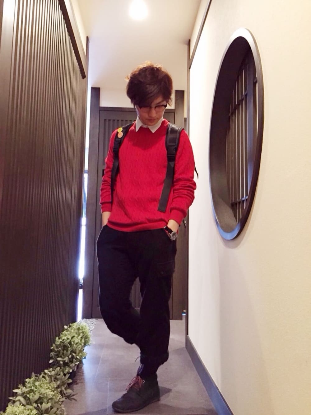 こんにちは! 今回はスウェットコーデです。 慣れなかったので すごいシンプルになっちゃいました…。 ポイントはだぼっとしたスウェットを ロールアップし、カジュアルに シャツはボタンを全部しめて かっちりとしてみました。
