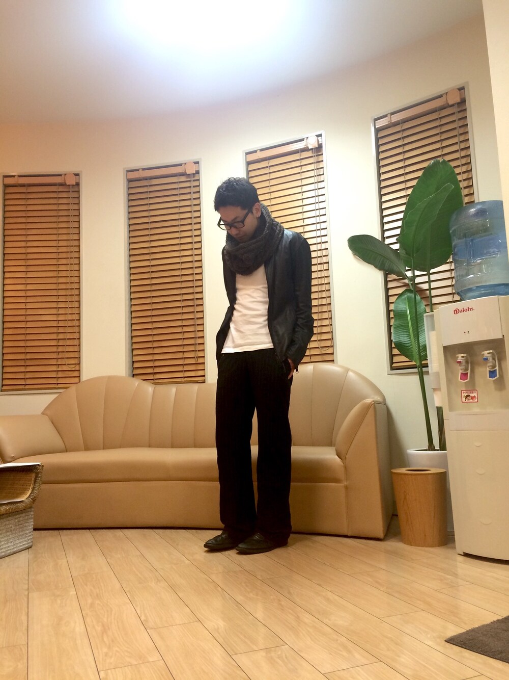 ご覧いただきありがとうございます^ ^ いつもイイネ、フォロー、セーブありがとうございます! 嬉しいです\(^o^)/ ノーカラーのレザージャケットとスヌードでモノトーンコーデ✳︎ シルエットが綺麗に見えるように意識しました^ ^